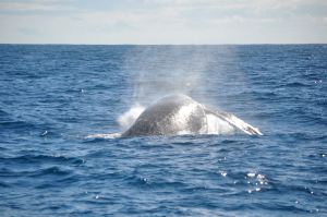 We’re on Whale One, about 11- 12 miles off the coast of Mooloolaba and we’re excited. In fact, even the crew is excited. Today is a good day – there are plenty of whales about and they’re having fun.