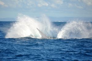 At about the 10-mile mark we saw our first blow – and then another. From this point, it just got better and better as we witnessed breach after breach and a couple of corkscrews. We even saw a rare double breach – where 2 whales came out of the water at the same time. Sadly I don’t have the photographic proof, but it was epic.